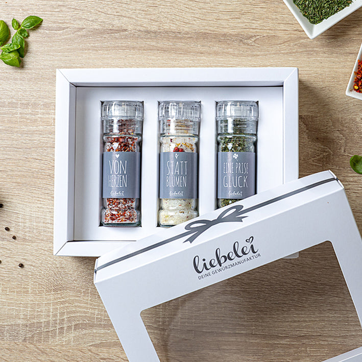 Ob für leidenschaftliche Hobbyköche, Genießer oder einfach als kleine Aufmerksamkeit: Unsere Gewürzgeschenke bringen Freude auf den Teller und ein Lächeln ins Gesicht. Mit viel Liebe von Hand gemischt, nachhaltig verpackt und mit dem gewissen Etwas versehen - Verschenke Genuss.