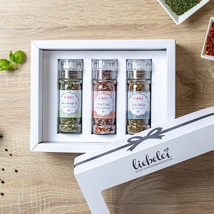 Ob für leidenschaftliche Hobbyköche, Genießer oder einfach als kleine Aufmerksamkeit: Unsere Gewürzgeschenke bringen Freude auf den Teller und ein Lächeln ins Gesicht. Mit viel Liebe von Hand gemischt, nachhaltig verpackt und mit dem gewissen Etwas versehen - Verschenke Genuss.