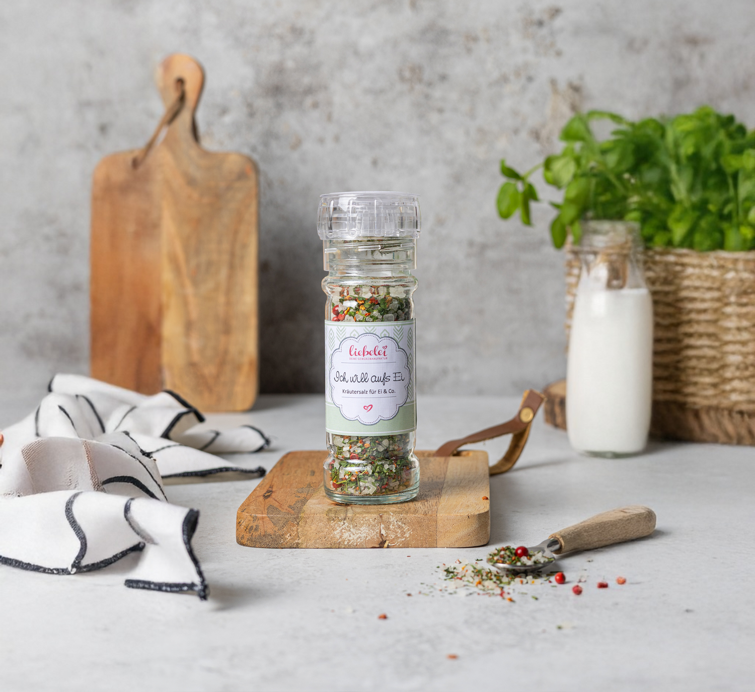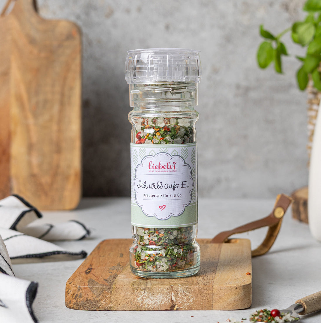 Dieses Kräutersalz wurde speziell fürs Frühstücksei entwickelt – mit Tomate, Schnittlauch und rosa Beeren. Auch perfekt zu Rührei, Bratkartoffeln oder Salat.