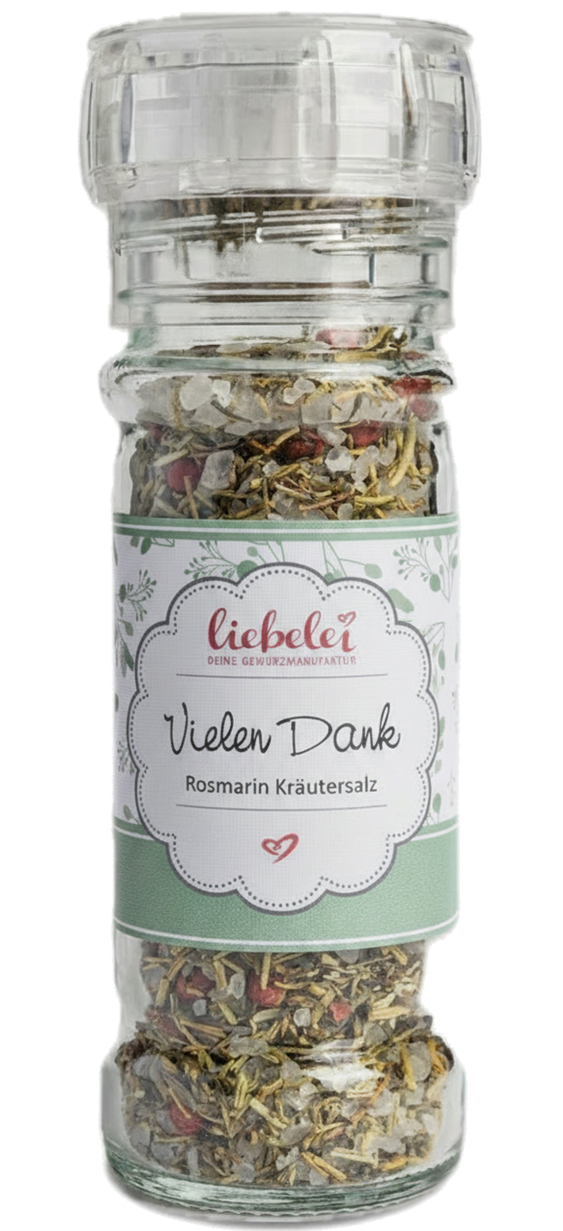 Zutaten: Meersalz, Rosmarin, Thymian, rosa Beeren