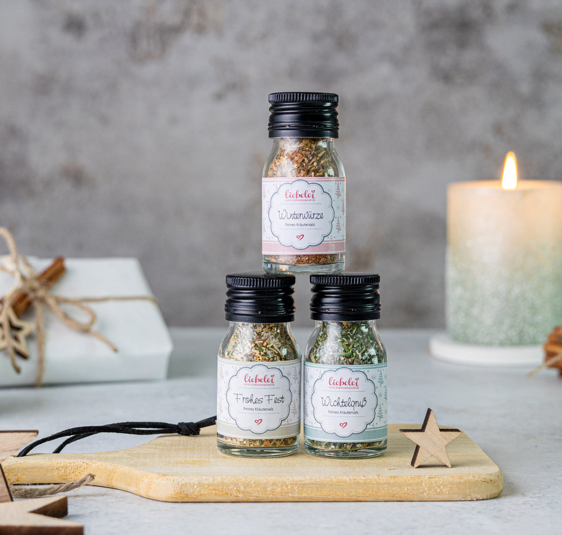 Ein Muss für jeden Adventskalender. Dieses Miniglas mit 25g würzigem Kräutersalz bringt würze auf den Wichtelteller. Das Kräutersalz verfeinert Pizza, Pasta und auch Fleischgerichte mit einer leckeren Würze.