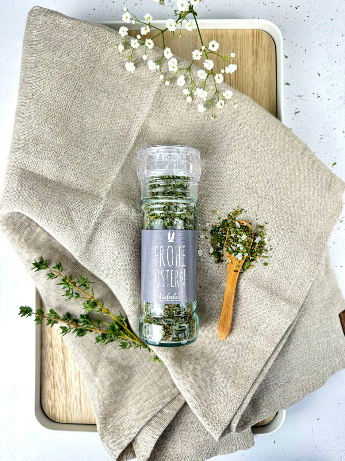 Jetzt wird´s würzig im Osternest. Mit unseren lecker würzigen Gewürzen machst du deinen Liebsten eine genussvolle Freude im Osternest. Mit diesem hochwertigen Gartenkräutersalz werden Gemüse und Kartoffelgerichte im Handumdrehen lecker gewürzt.